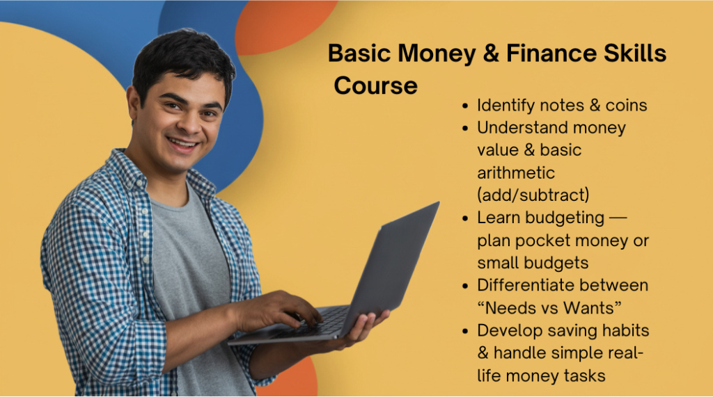 A practical and beginner-friendly finance course that teaches money identification, spending, saving, budgeting, and simple real-life financial tasks for learners with special needs.
